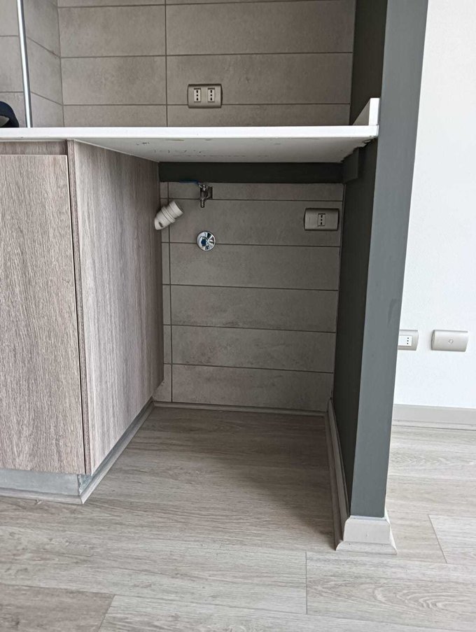 La cocina se encuentra equipada con encimera, horno y campana, además de contar con conexión a lavadora, entregando mayor practicidad para el uso diario.