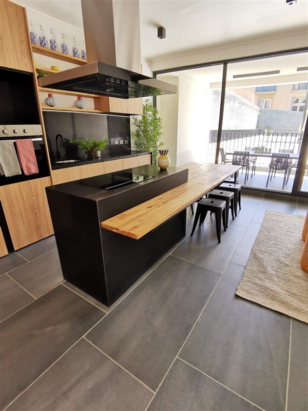 Características y terminaciones del departamento: piso SPC, cocina equipada con horno, campana, encimera vitrocerámica y cubierta de granito. Ventanas termopanel y agua caliente por termo eléctrico. Cuenta con desayunador con sillas bar, set de vajilla, servicio, hervidor y futón.