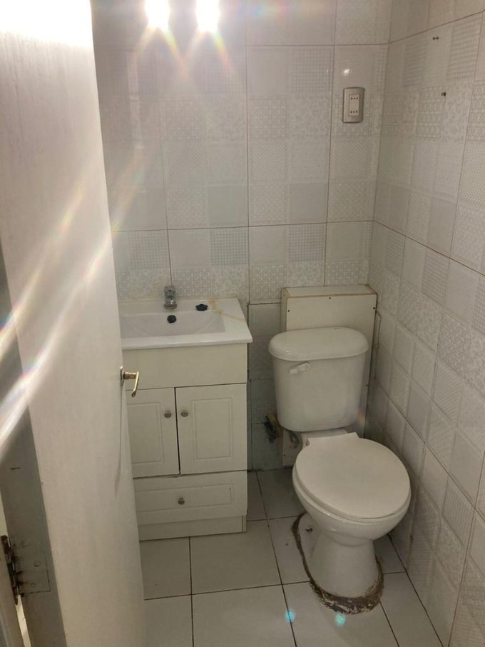 Baño completo con cerámica de muro a muro y vanitorio