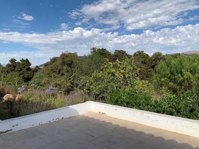 La casa tiene un amplio terreno de más de 9.000 m2 con gran patio y huerto, maravilloso jardín con agua de riego de pozo, huerta con arboles frutales, terrazas, bodega y estacionamiento para varios autos.