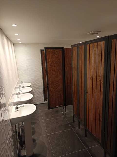 Un baño para hombres, otro para mujeres y cuenta tambien para discapacitados.