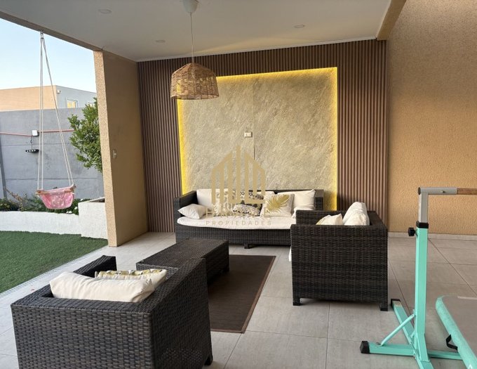 Entre sus atributos se destacan: cocina equipada, comedor, suite principal, sala de estar, patio, closets, logia, walkinv closet, baño de visitas y amplia cocina cerrada. Además, cuenta con alarma, portón eléctrico, seguridad privada y acceso controlado 24/7.