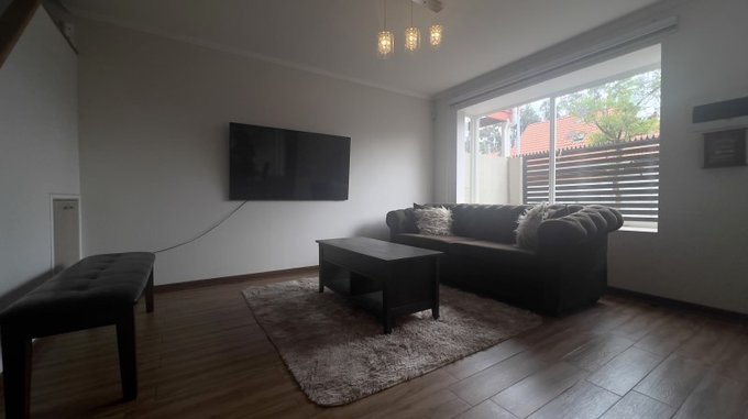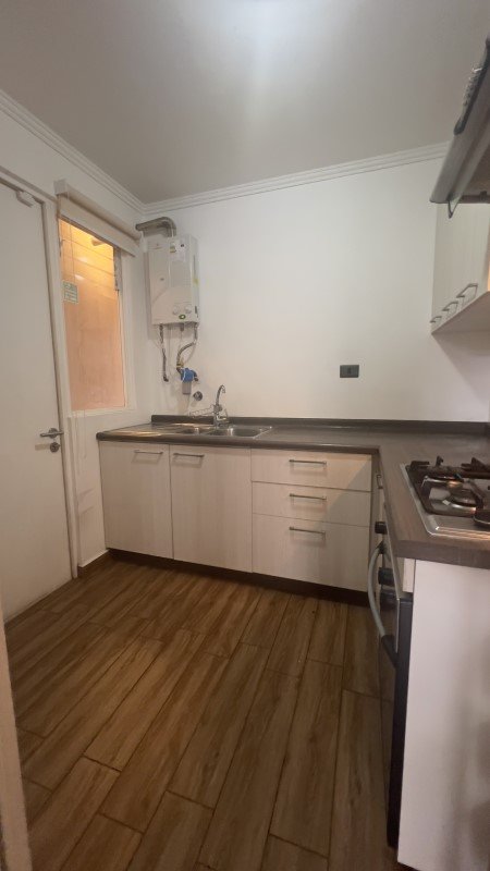 Amplio Living Comedor, equipado con cortinas roller, piso flotante y aire acondicionado. Además cuenta con gatera bajo la escalera.