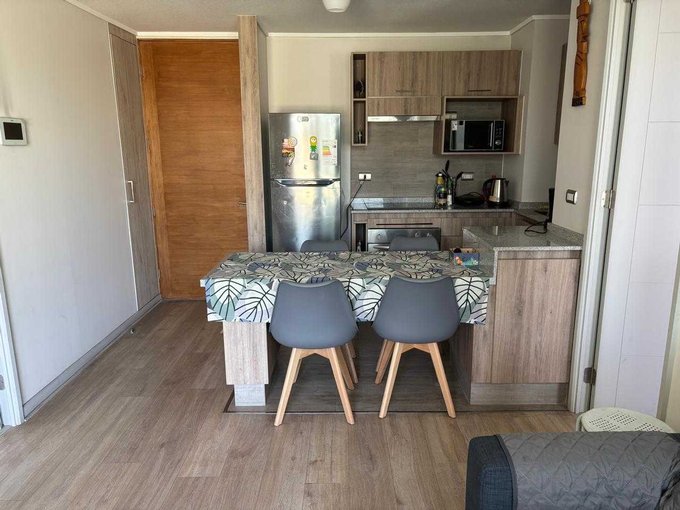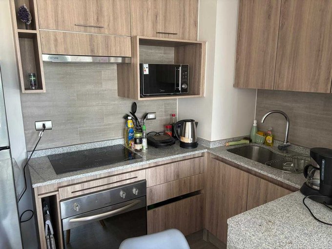 Departamento en arriendo estilo mariposa amplio, luminioso, excelente conectividad, descubre el espacio perfecto para ti en Peñalolén. Cuenta con dos dormitorios iguales de buen tamaño en suite, cocina abierta gran espacios y muebles para guardar, con salida a terraza amplia y despejada, logia con conexion para lavadora.