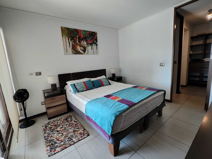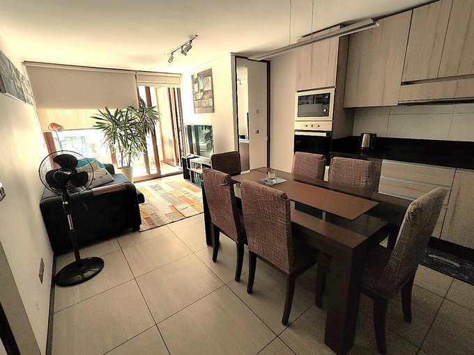 Completamente Amoblado: Refrigerador, lavadora, microondas, camas, veladores, sofá, mesa comedor con sillas, mesa centro, Rack para TV, etc.