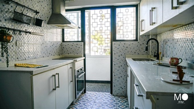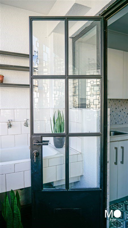 En la cocina puertas de metal vidriado que le entrega toque moderno, genera amplitud y luminosidad
