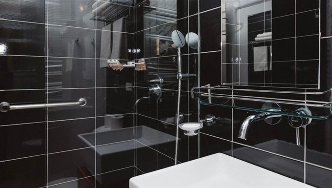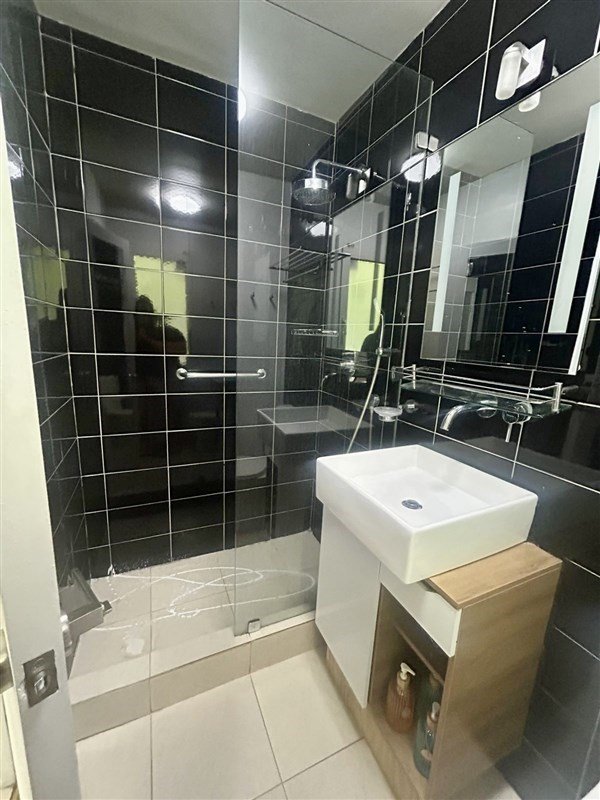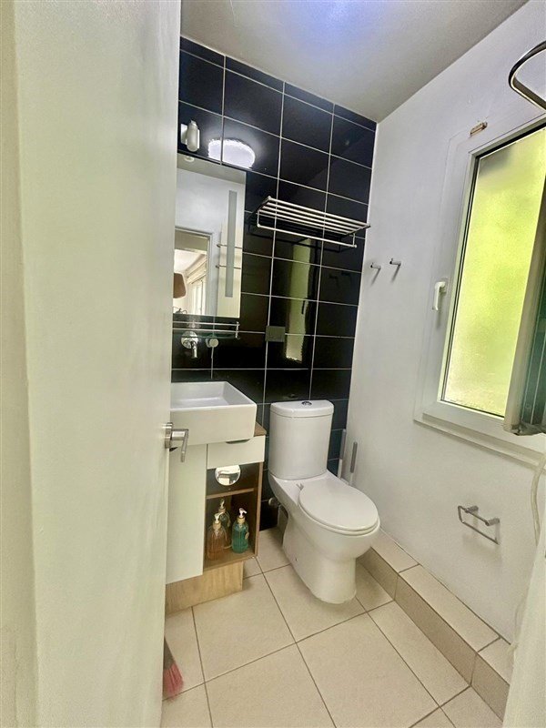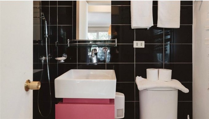 Baño con shower door y ventilación natural