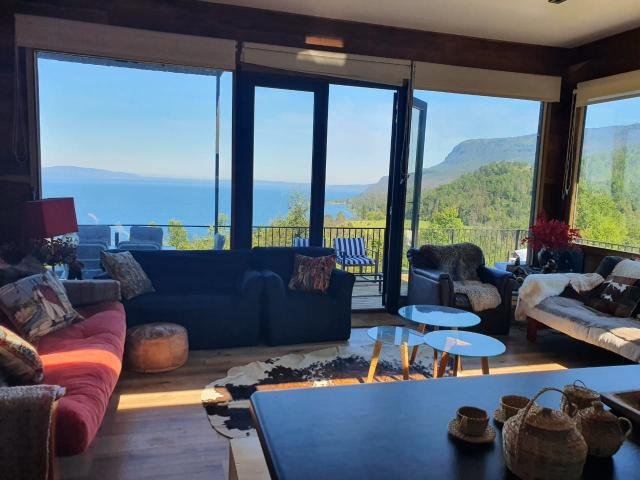 Condominio Río Plata Bordeando el lago , cruzando el río Trancura Desde el aeropuerto Pucon a 9 kms Playa para el condominio quienes ponen quitasoles y reposeras para sus propietarios Casa moderna con 8 dormitorios y 5 baños Salita Living comedor y cocina integrada muy grande con ventanales mirando al lago y desembocadura río Trancura Gran terraza mirando al lago con toldos eléctricos corredizos Quincho Jardín soleado y piscina grande con terraza Pozo de arena para los niños muy grande Cuenta en un sector de la parcela (5000 mt) con bosque nativo con senderos y puente colgante para recreación de los niños .Asientos y columpios en el bosque Arriendo Enero mínimo de días 3 semanas 21 días : Por día: $ 340.000 Se arrienda con 7 dormitorios Procasa: 65106 Código interno Procasa: 65567