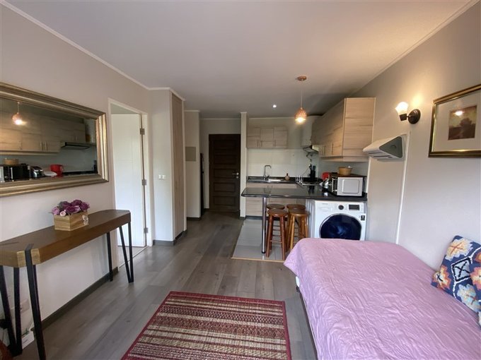 En Arriendo departamento de 1 dormitorio ,2 ambientes , full equipado En Condominio Pucón Andino. Año corrido.