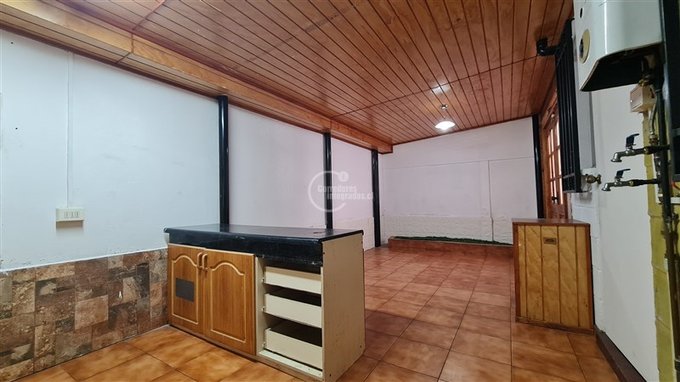 - Cocina americana ampliada con bloques de hormigón y amoblada.