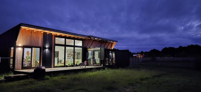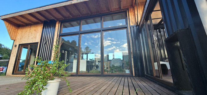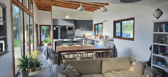 Se arrienda casa amoblada de arquitectura nórdica orientada al norponiente permitiéndole aprovechar al máximo el sol de invierno para la calefacción de los espacios compartidos.