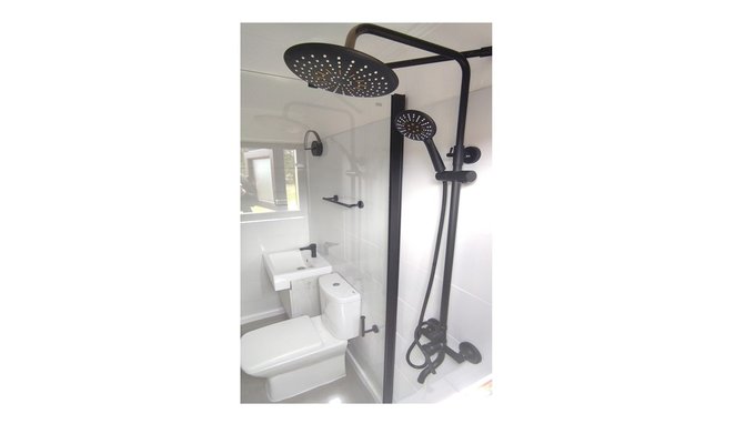 _ Baños con receptáculo y mampara fija.