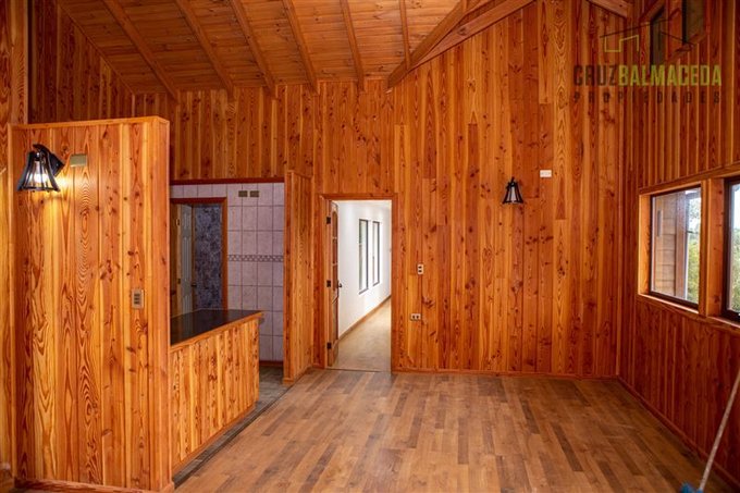 Cuenta con excelentes terminaciones en madera de pino oregon. Posee una Inmejorable vista a volcanes Osorno y