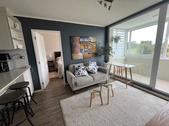Todas las ventanas son de termopanel, cuenta con estacionamiento, y se encuentra totalmente amoblado.