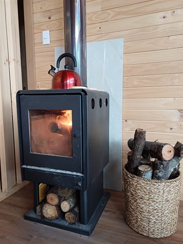 Living comedor amoblado con estufa a leña