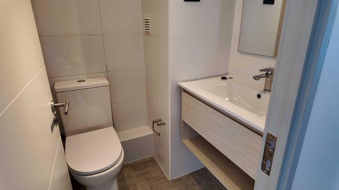 Full eléctrico, cocina integrada y equipada con encimera, horno eléctrico y campana.