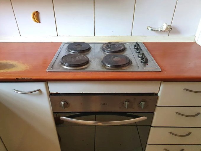 Cocina completamente equipada con encimera, horno empotrado y acceso directo a logia techada.