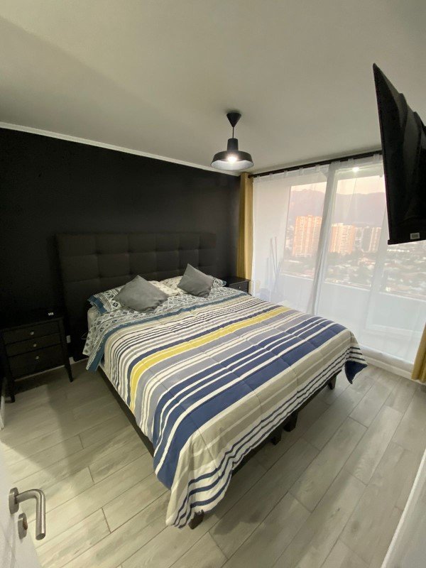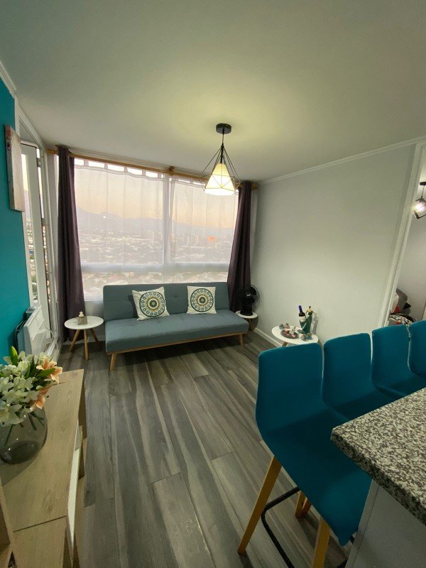 Cocina equipada con horno, campana y encimera, Piso porcelanato, mesón y cubierta de granito. Conexión lavadora. Living con acceso a terraza, calefacción eléctrica.