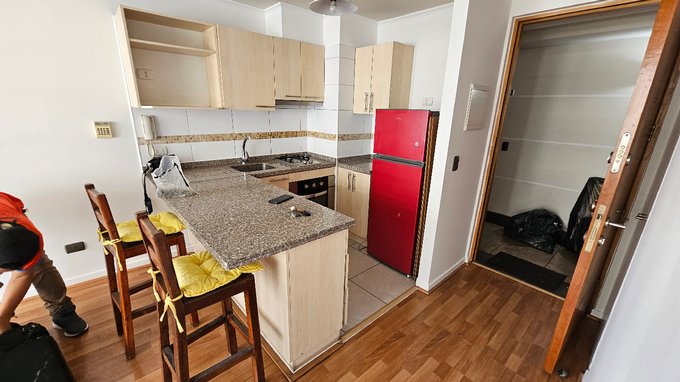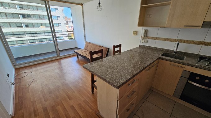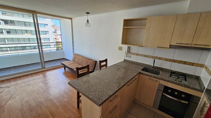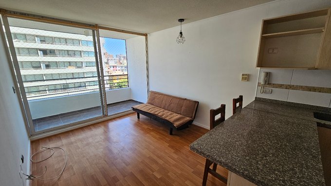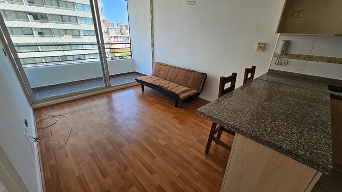 Amplio depto. Con terraza un dormitorio con estacionamiento, sin bodega.- queda refrigerador, instalacion lavadora.- con malla