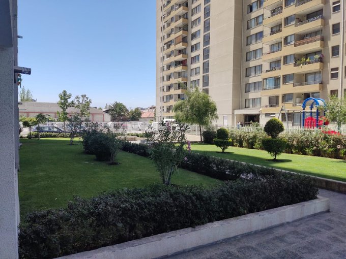 El edificio cuenta con áreas verdes, piscina, salón de eventos, gimnasio, lavandería, conserjería 24 horas y estacionamientos de visitas, generando un entorno seguro y cómodo para vivir.