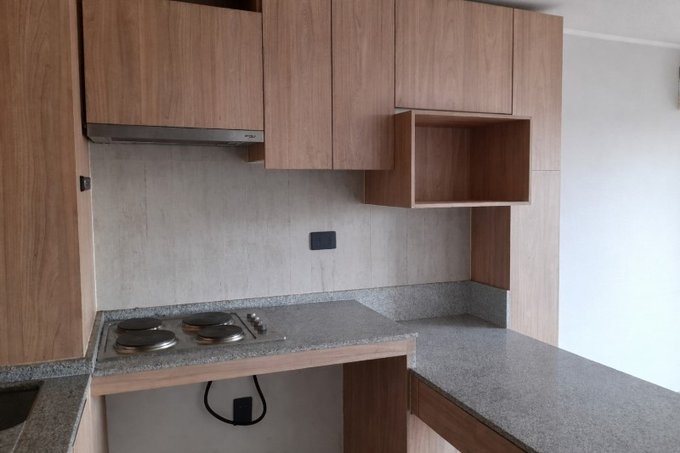 Cocina americana equipada con encimera electrica. Mubles de cocina con cubierta.