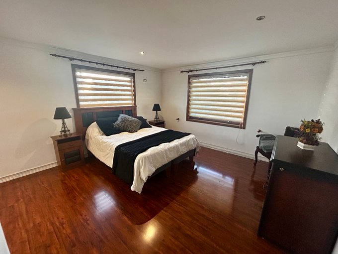Primer nivel: amplio living comedor, 1 baño y cocina de gran tamaño equipada. Escalera amplia, en madera chilena
