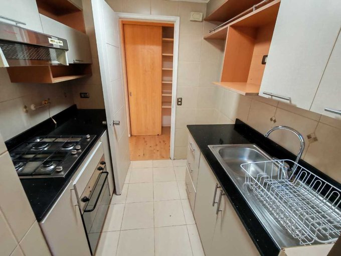 Terraza con excelente orientación, dos baños, piso flotante en todo el departamento, Cocina independiente con finos elementos empotrados, acogedor living comedor, en excelentes condiciones. Con estacionamiento y bodega, Salón de eventos y Piscina . Portero eléctrico y conserje las 24 horas.