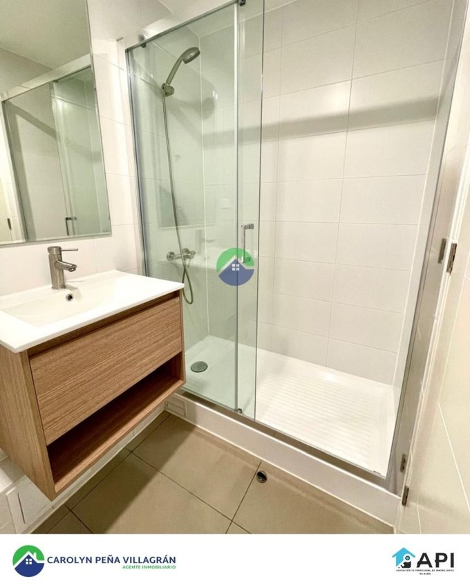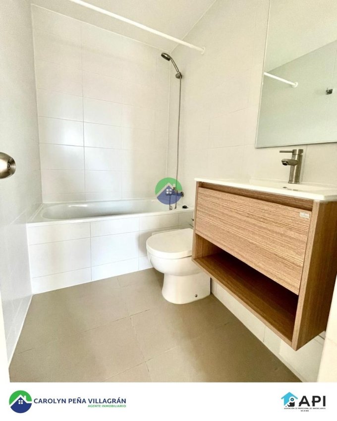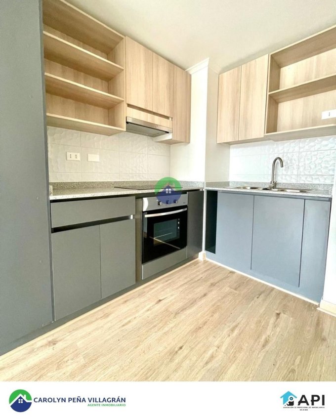 Consta de 2 dormitorios (con closet) y 2 baños (principal en suite), cocina americana amoblada, full equipada con campana, encimera vitrocerámica y horno eléctrico, Living-comedor con acceso a balcón, loggia, ventanas de termopanel PVC, piso fotolaminado en Living-comedor y dormitorios, Piso gris porcelánico en cocina salpicadero en cocina, calefon.