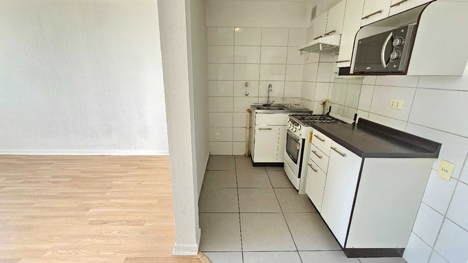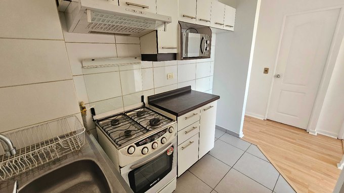 A pasos del Metro! Moderno y luminoso departamento de 1 dormitorio y 1 baño, ubicado en el piso 10. Cuenta con una cocina independiente equipada con encimera a gas, horno y campana, además de conexión para lavadora.