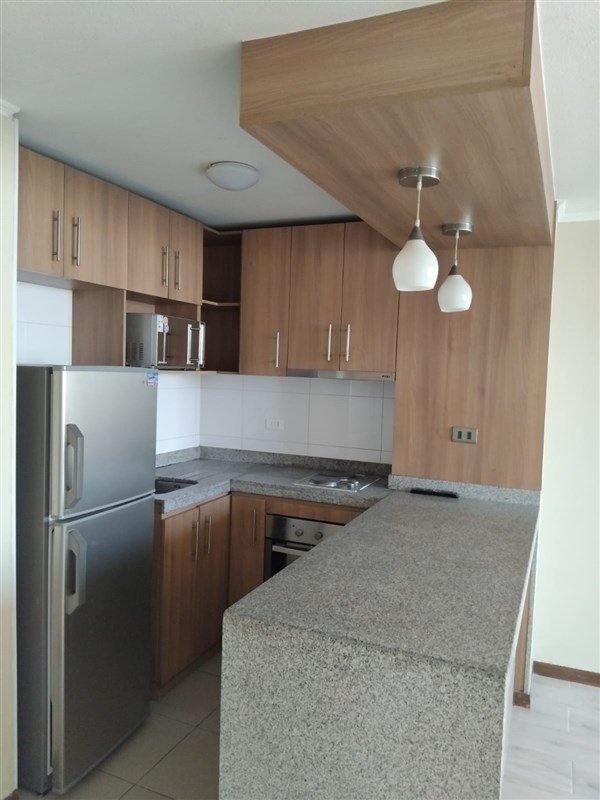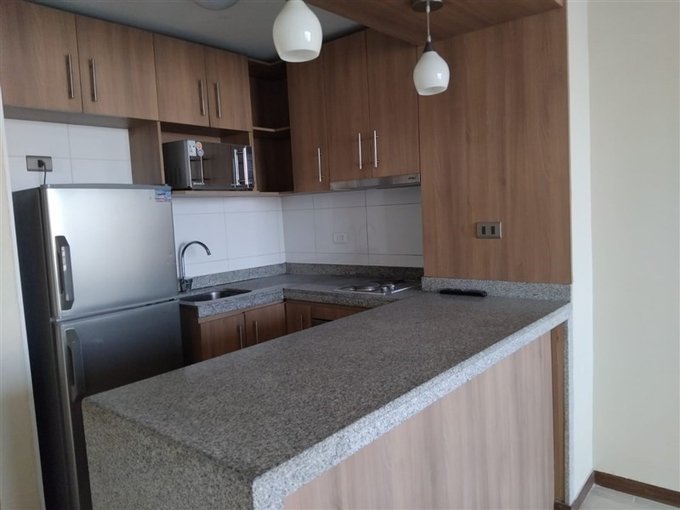 Departamento con excelente ubicación en la Comuna de Santiago, Gral. Mackenna con Amunátegui. En el se distribuyen armónicamente: un (1) dormitorio en suite con walk-in clóset, TV y salida a terraza; un (1) baño completo con tina; espacioso living-comedor con salida a terraza; cocina totalmente equipada con cubierta de cuarzo, comedor de diario, encimera eléctrica, horno, campana retráctil, refrigerador, microondas y muebles con cajones metálicos cierre suave; conexión para lavadora; cortinas; luminaria completa; piso cerámico; ventanas termopanel y bodega.