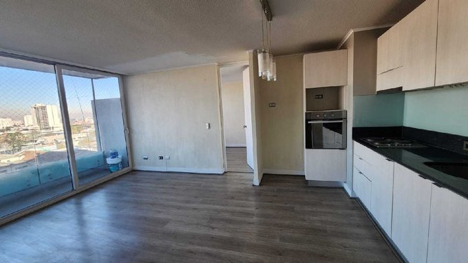Moderno y funcional departamento de 2 dormitorios y 2 baños completos, con distribución estilo mariposa que entrega mayor privacidad entre habitaciones. Cuenta con cocina abierta amoblada y equipada con encimera eléctrica, horno empotrado y campana digital. Además, incluye conexión para lavadora, estacionamiento y una amplia bodega.