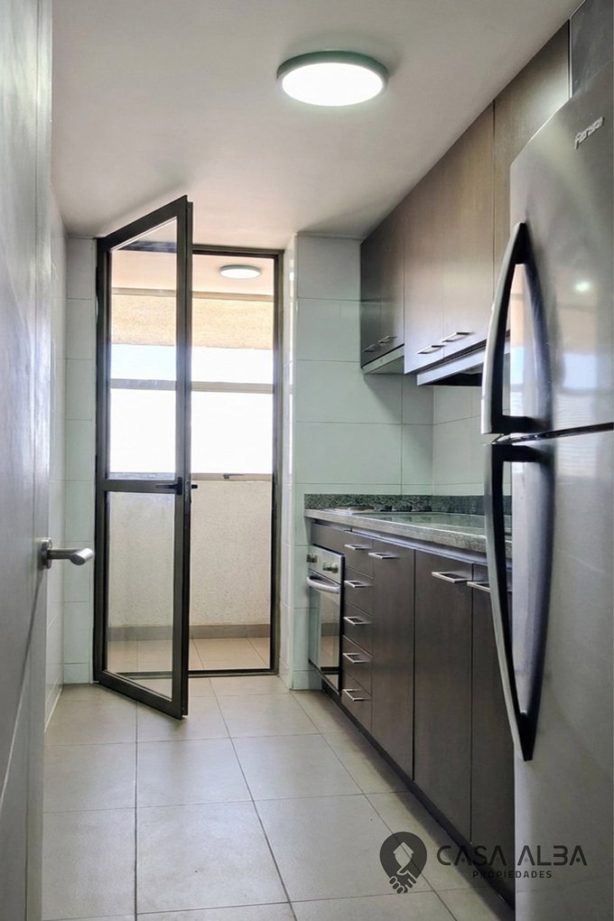 Al entrar a la propiedad, de orientación nor-oriente, te recibirá un práctico hall recibidor, con espacio suficiente para mobiliario, e inmediatamente frente a ti encontrarás la cocina independiente, de diseño alargado y muy funcional, que incluye una logia separada por una puerta para mayor orden. El living comedor destaca por ser bastante amplio y luminoso, culminando en una terraza con una vista despejada y exquisita hacia todo Santiago, el lugar perfecto para disfrutar de un café o ver el atardecer con la ciudad a tus pies.