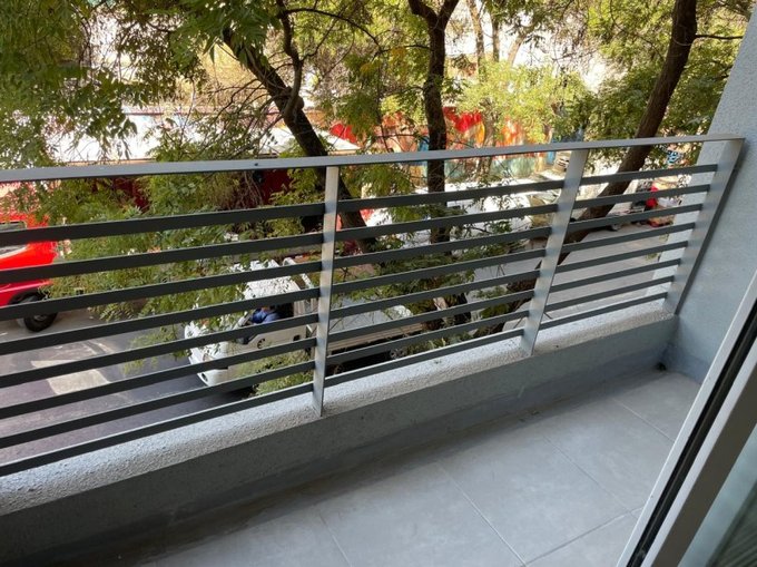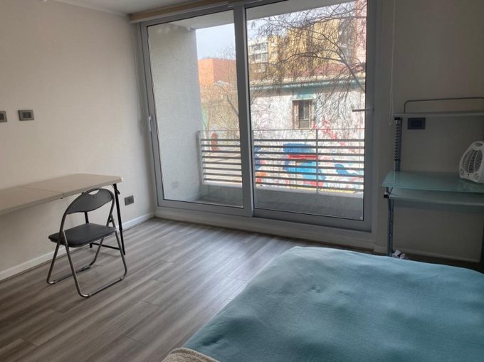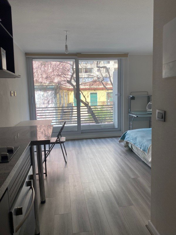 Cómodo y amplio Home Studio con balcón y ventana con termopanel