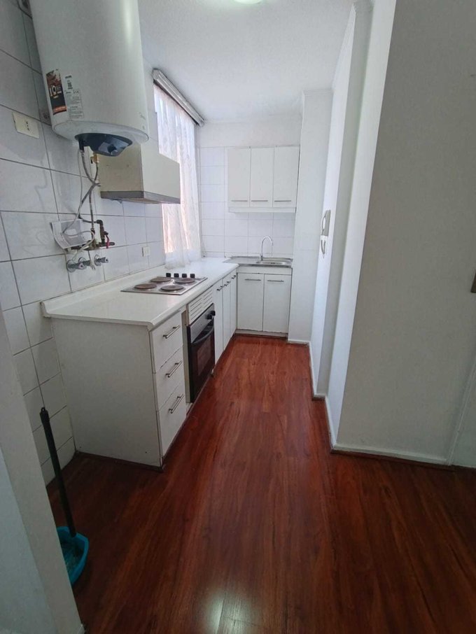 El departamento cuenta con 1 Dormitorio con su closet y alfombra, Baño completo con amplia tina, living comedor amplio, cocina americana equipada con cocina encimera y Horno.