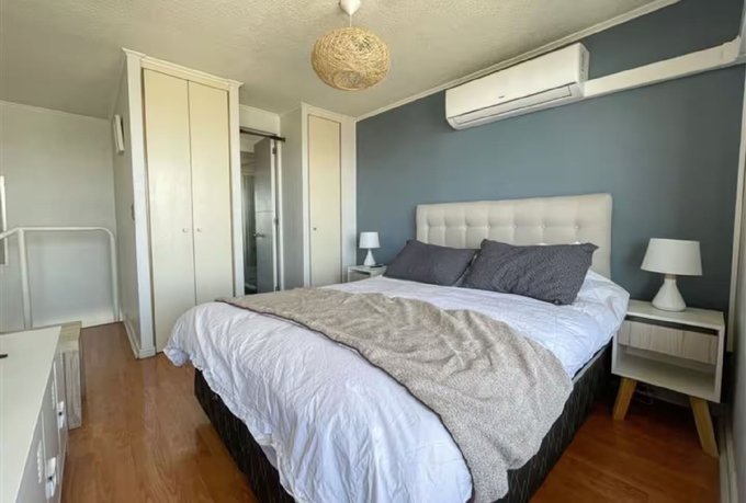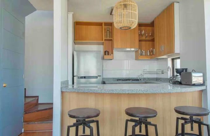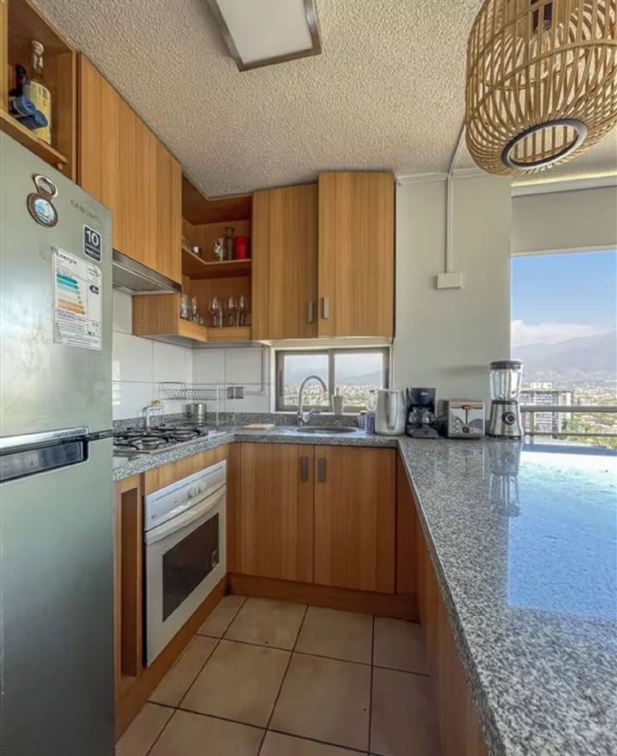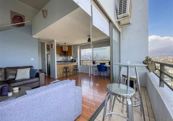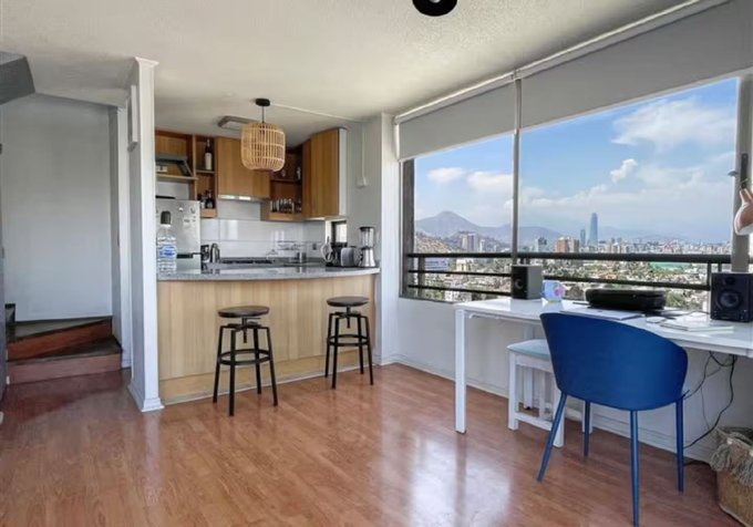 Cuenta con un diseño funcional en dos niveles, con un dormitorio en altura que disfruta de increíbles vistas de Santiago, baño completo con ducha, y una cocina abierta totalmente equipada. Además, dispone de cortinas opacas en todos los ventanales y aire acondicionado, asegurando confort en cualquier época del año.