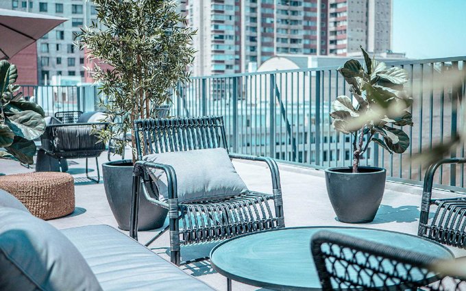 Edificio de tan solo 8 pisos con lindas áreas comunes: Sala multiuso, sala de coworking, Quinchos en cubierta y azotea, Zonas de estar en cubierta, Gimnasio, E-lockers, lavandería, Reciclaje inteligente, estacionamientos de visita y bicicleteros. Conserjería y seguridad las 24 horas.