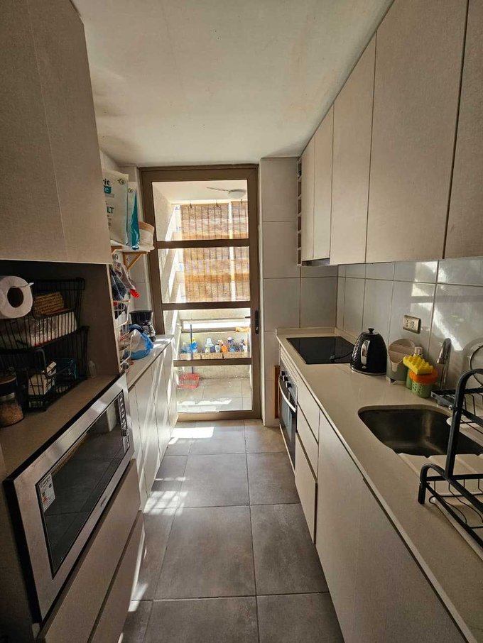 Piso flotante, terraza en living y dormitorio principal. Cocina independiente con encimera, horno y microondas, logia