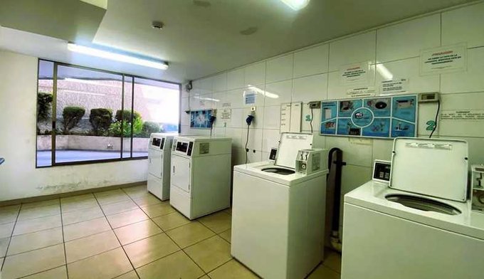 Sin instalación para lavadora, edificio cuenta con lavandería.