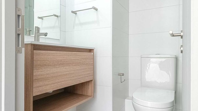 Características y terminaciones: puerta de acceso enchapada y marcos de PVC foliados. Piso SPC en el interior del depto., porcelanato en baños y terrazas. Dormitorio principal incluye baño con shower door y walk-in closet. Cocina con respaldo y cubierta de porcelanato, encimera vitrocerámica con campana retráctil y refrigerador panelable. Barandas de cristal en terraza.