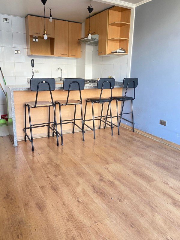El departamento cuenta con 34 m² construidos y 45 m² totales, con una distribución eficiente que aprovecha muy bien los espacios. Dispone de 1 dormitorio, 1 baño y orientación poniente, lo que permite disfrutar de excelente luminosidad natural durante la tarde.