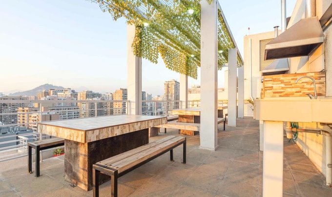 Edificio con conserjería y acceso controlado las 24 horas, cuenta con lavandería, gimnasio, sala multiuso, estacionamientos de visitas, piscina y terrazas panorámicas.