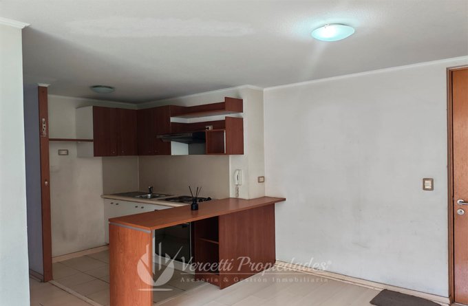 Se Arrienda departamento de 2 dormitorios (dormitorio principal con baño), living comedor con salida a terraza y cocina amoblada y equipada con encimera y campana eléctrica.