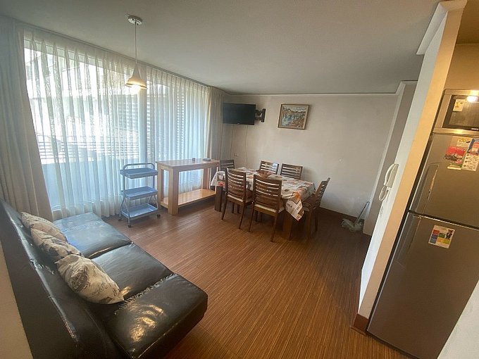 Departamento amoblado en arriendo en Santiago Centro, con 2 baños y 3 habitaciones. Ubicado a pasos del Metro L1, este acogedor departamento de 60 m2 construidos cuenta con una terraza de 5 m2 y orientación norte. Gastos comunes aproximados de $80,000 pesos.