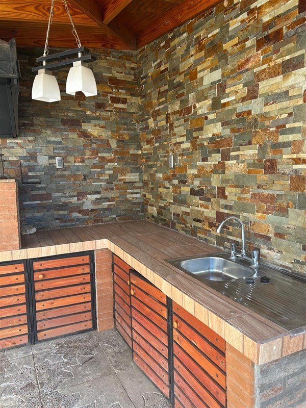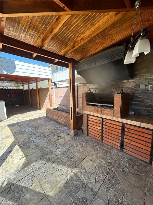 Se arrienda casa de 4 dormitorios y 2 baños, gran living comedor, cocina buen tamaño, excelente patio y quincho, con asadera, campana, lavadero, iluminación en todo el patio y cobertizo lateral con porton de madera hacia el antejardín.