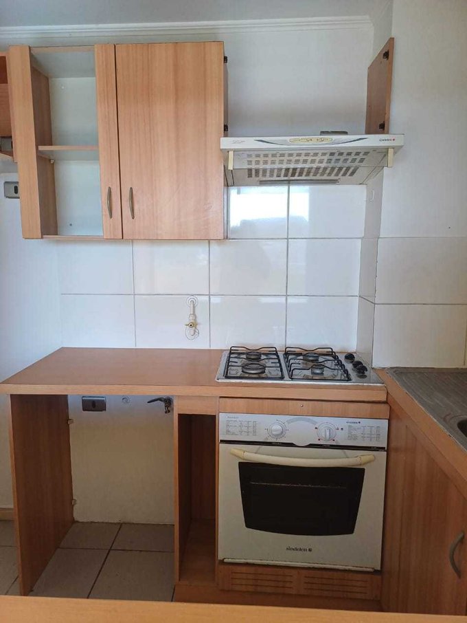 Cocina americana amoblada y equipada (horno empotrado, encimera, campana)