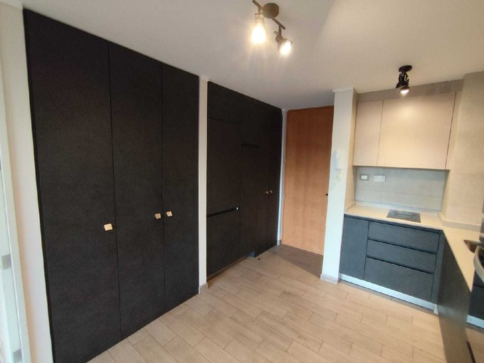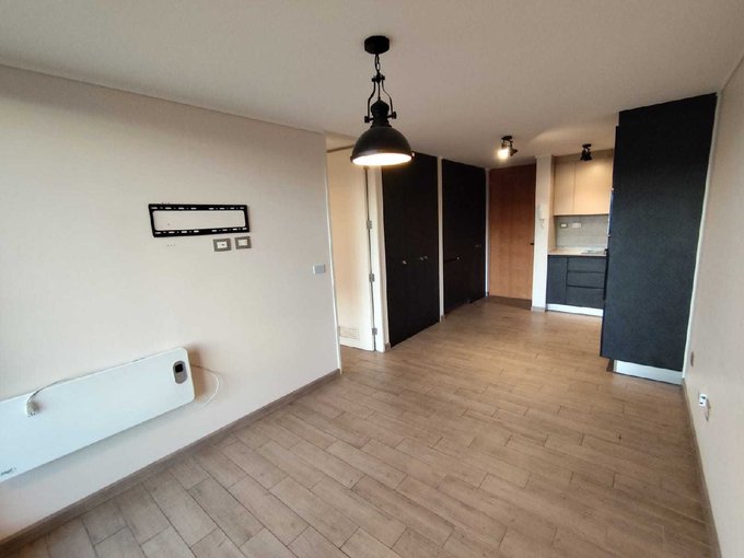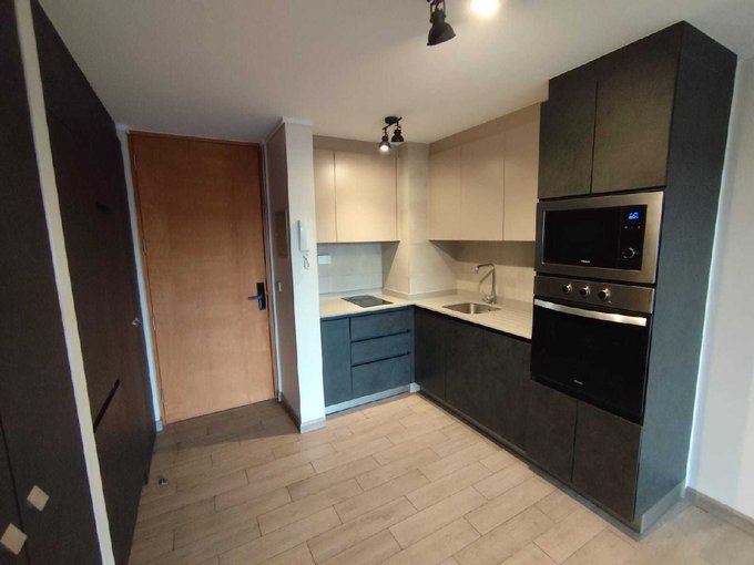 Se arrienda moderno y acogedor departamento de 1 dormitorio y 1 baño, con cocina integrada completamente amoblada y equipada con encimera, horno y refrigerador empotrado.