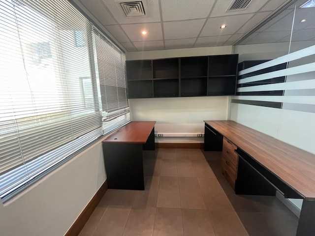 La oficina posee rollers en todas sus ventanas, climatizador, control biométrico en puerta principal, piso porcelanato, muebles en todos los privados.
