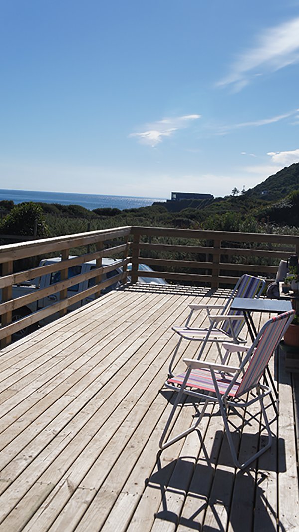 Posee una terraza a lo largo de toda la casa de 25 m2 con vista al mar. Hermosos atardeceres.
