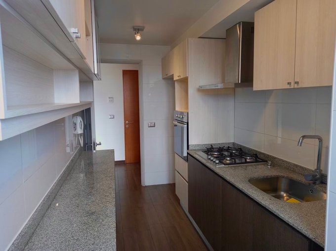 Este departamento ofrece un potencial excepcional para quienes buscan encontrar un rincón acogedor para vivir. Cuenta con 75 m2 más terraza, distribuidos en living-comedor, cocina semi amoblada, logia, dos dormitorios con closet incluido y dos baños. Incluye calefacción central a gas por medio de radiadores, un estacionamiento interior y bodega. El departamento se encuentra en un condominio que dispone de ascensor, acceso controlado 24/7, piscina, quincho, sala de eventos, gimnasio y espacios comunes con áreas verdes.