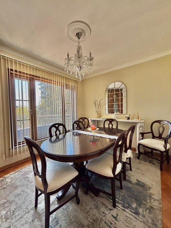 Elegante hall de entrada, baño de visitas, amplio living con chimenea de mármol y salida a terraza con vista verde y al mar. Comedor separado. Cocina independiente, amplia y totalmente remodelada, con comedor de diario y loggia.